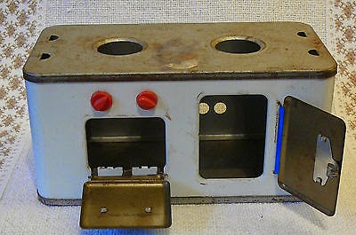 A : They are toys that could be used for either playing or actually cooking. (In miniature, of course.) They are also can be called Tin Toy Stoves, Doll Stoves, Working Doll Stoves, etc.